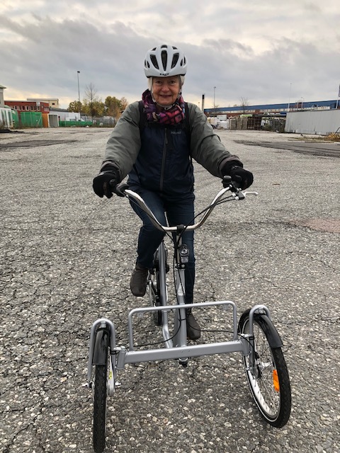 Inte alls så lätt som man tror. Ylva var verkligen road och duktig att framföra cykeln – se bilden. Tack Anette och Maivor för den fina genomgången och fikapausen.