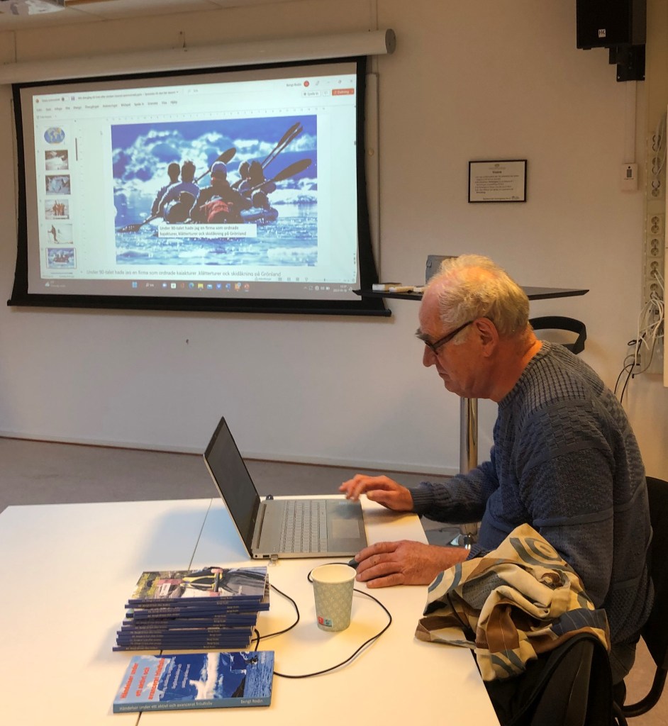 18 januari Vi var 15 personer som lyssnade på Bengt Rodin när han berättade om sina resor med kajak både före och efter sin stroke. Han har intresserat sig för vildmarken och varit på många platser i världen. Det är nu 5 år sedan han fick sin stroke med förlamning. Bengt visar på att det går att fortsätta med sitt stora intresse. Men en lite anpassad kajak kan han fortsätta att uppleva naturen, även om resorna idag är lite mindre äventyrliga än före strokeanfallet.