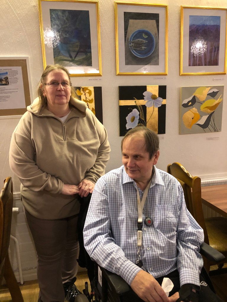 16 februari Vi var 6 personer som var på Nya Blå Hallen i Lindesberg och tittade på konst och åt lunch. Christina och Bo tittade på konsten som var utställd.