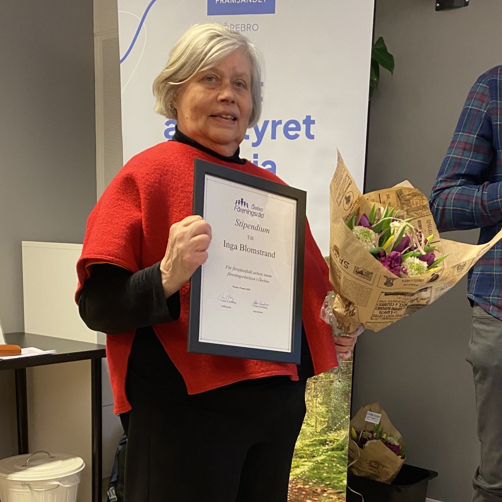 19 mars Strokeföreningen har nominerat Inga Blomstrand till Årets ledare till Föreningsrådet. Här får hon ta emot utmärkelsen. Inga tackar alla strokeföreningens medlemmar.