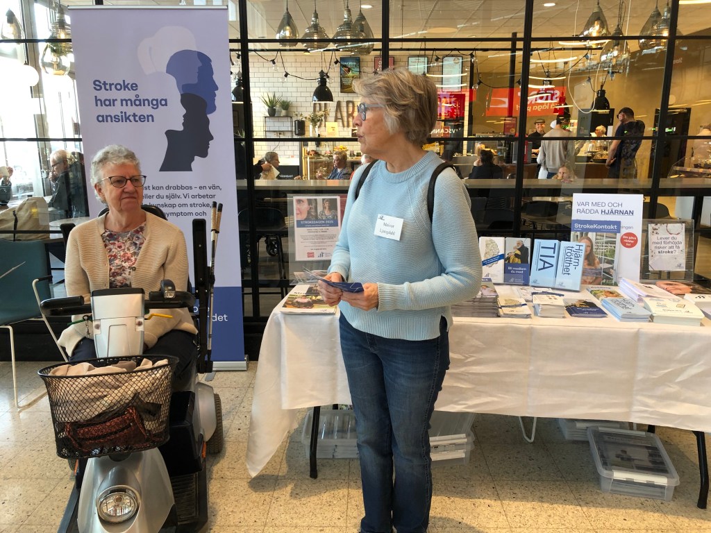 29 april Det var mer än 100 personer som intresserade sig för vårt informationsmaterial i entrén på ICA Maxi Boglundsängen. En tisdag full med handlande seniorer och så var vi 8 från strokeföreningen, Kerstin, Maivor, Ylva, Robert H, Birgitta, Gudrun, Ellinor, Inga som delade material och talade om AKUT testet. Många intressanta diskussioner blev det och vi kommer att bli inbjudna för att sprida vårt budskap på fler ställen. Många extra deltagare har vi haft på hemsidan idag – hela 18 stycken. Tack till Sebastian butikschefen på ICA Maxi för att vi fick stå i entrén!