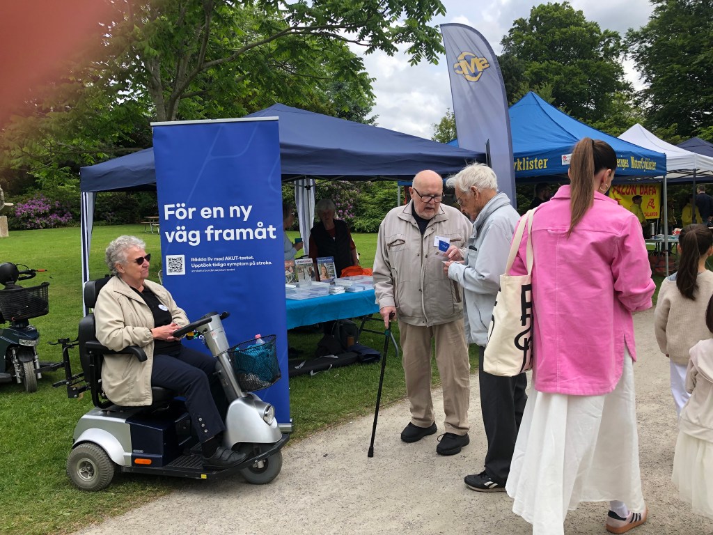 6 juni Nationaldagen är en dag för föreningslivet i Örebro. Alla föreningar får visa upp sig i Stadsparken Örebro. Strokeföreningen Örebro var naturligtvis med. Det blir som en folkfest och 25 av våra medlemmar kom förbi och var beredda att hjälpa till. Publiken är i alla åldrar med många föräldrar och barn. AKUT korten gick åt som smör i solsken….många tackade för informationen och insåg att det var en värdefull kunskap. Bertolof gjorde en väldigt fin insats, det är kul att sprida information säger den gamla affärsmannen. Här ser vi honom i aktion:
